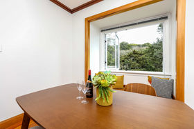 The generous lounge is flooded with light and flows through to tasteful dining or quiet retreat. Large bi-fold window opens to tranquil tree-lined vista beyond, allowing the magic of the outdoors in.