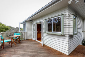 Immaculate timber kitchen is functional and opens out to substantial deck, a fabulous spot to entertain and enjoy this special private space.