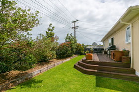 The garage has a rumpus / man-shed attached. Good off street parking and established fruit trees. This tidy property is a few minutes from the beach, parks, take-aways and a short walk to good schools and shops.