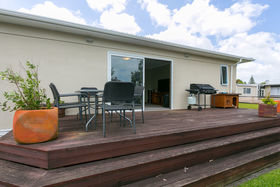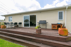 The lounge leads to vast decking, which flows to a fully fenced flat section, providing an excellent yard for children to play. Aluminium windows throughout, heat pump, gas hot water.