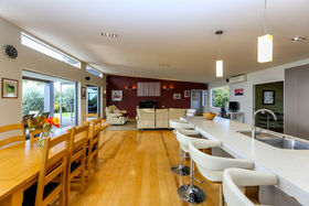 Single level living at its best. If privacy and superb indoor-outdoor entertaining are a priority with room to spread, then this is the home for you. Constructed from low maintenance materials of block and plaster offering substantial living over a commodious 303sqm floor plan. Comprising of open plan kitchen, dining and living. Light and bright unfolding to a superb north facing outdoor entertaining paradise complete with shelter and shade for all the seasons. Four spacious bedrooms, master with en suite and large walk in robe. Office and media room or fifth bedroom. Superb storage which is an absolute must and a beautifully appointed main bathroom complete this impressive residence. Located in the sought-after Shelter Grove tucked down a ROW on 1999sqm. Well established grounds and garden with scope to accommodate your outdoor wish list, room for that lap pool. Zoned for Woodleigh and Highlands school. Frankleigh shops close by and New Plymouth CBD a mere seven minutes' drive. Hard to find better. Call now for your immediate inspection. Information Memorandum and LIM available to download.